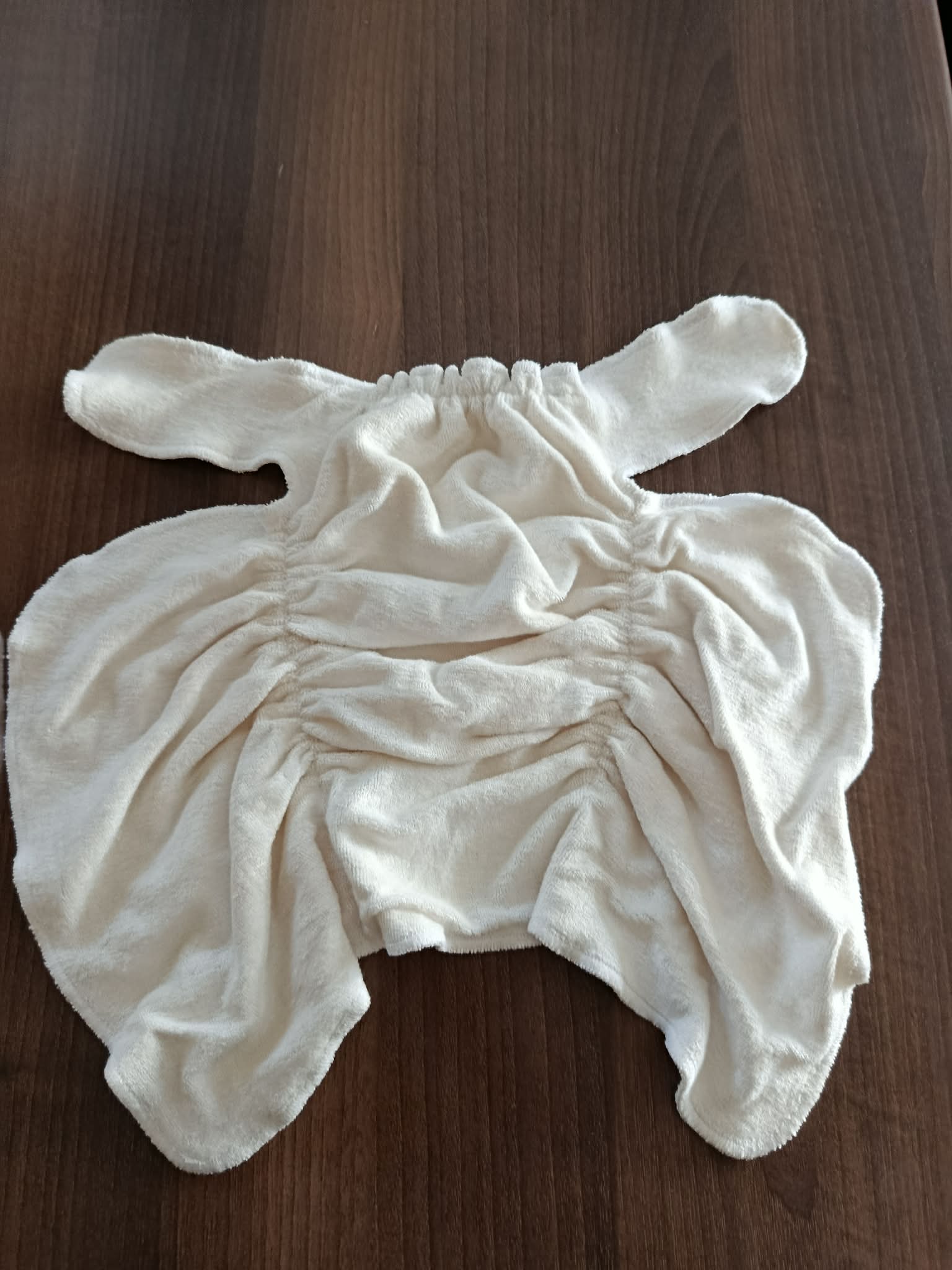 Preflat to pieluszka prostokątna z “uszami”, do której dołączony jest booster. Składa się go w kształt pieluszki i zakłada się pod warstwę nieprzemakalną (otulacz PUL lub otulacz wełniany w odpowiednim dla dziecka rozmiarze). Najlepiej go zapinać na dziecku klamerką Snappi.